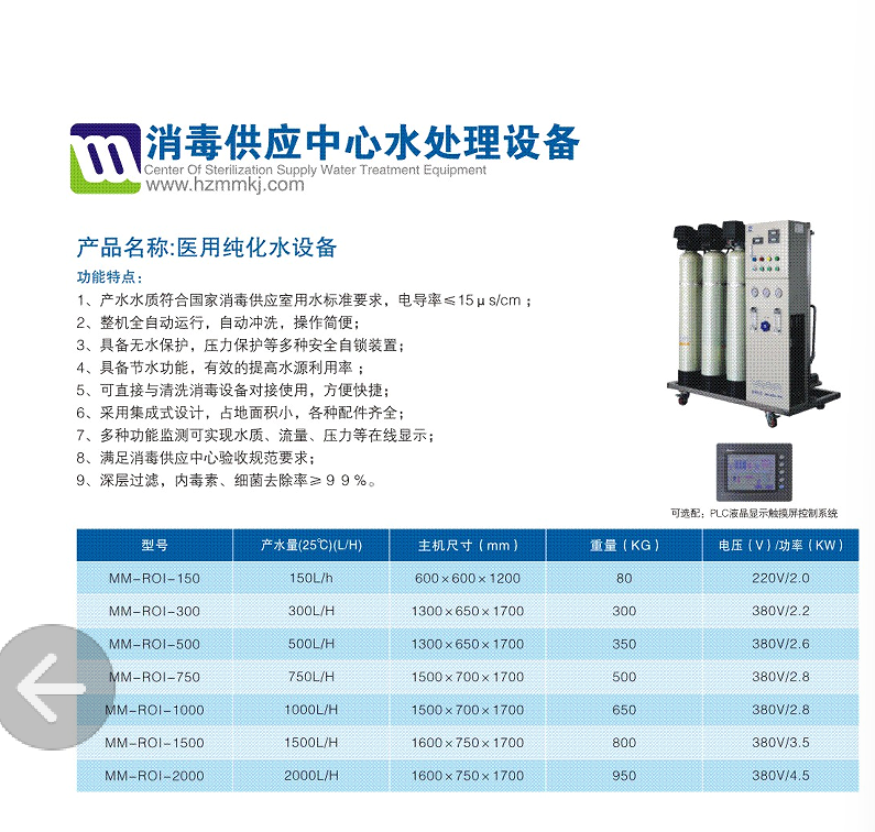 1、主要用于消毒供应室清洗用水、灭菌器用水