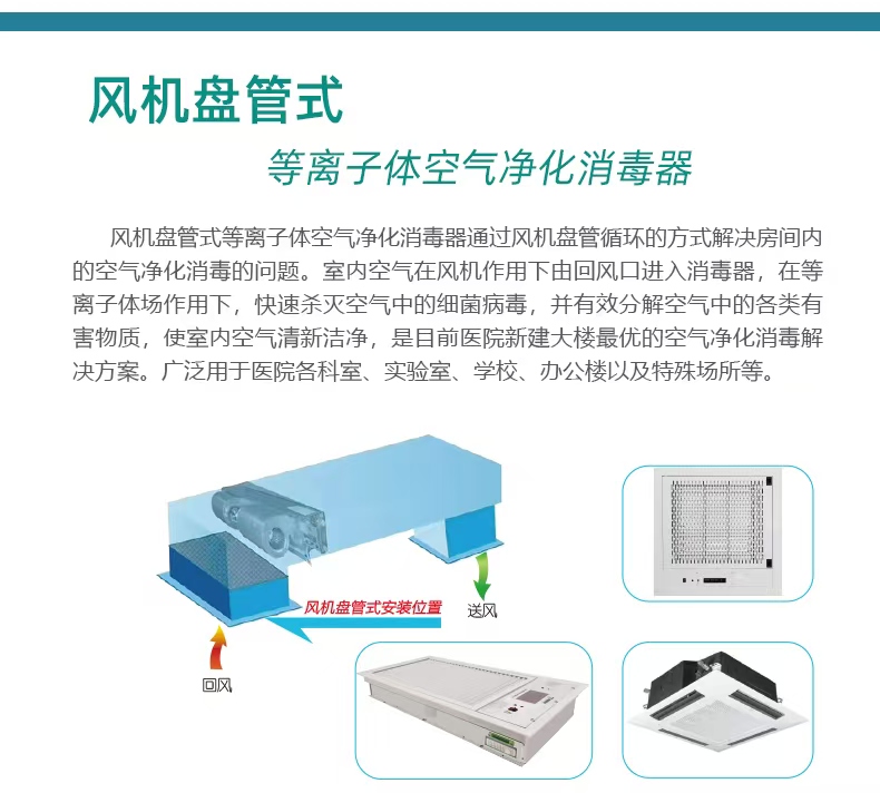 2、经过风管的空气进行消毒、以及通过风管循环的消毒。