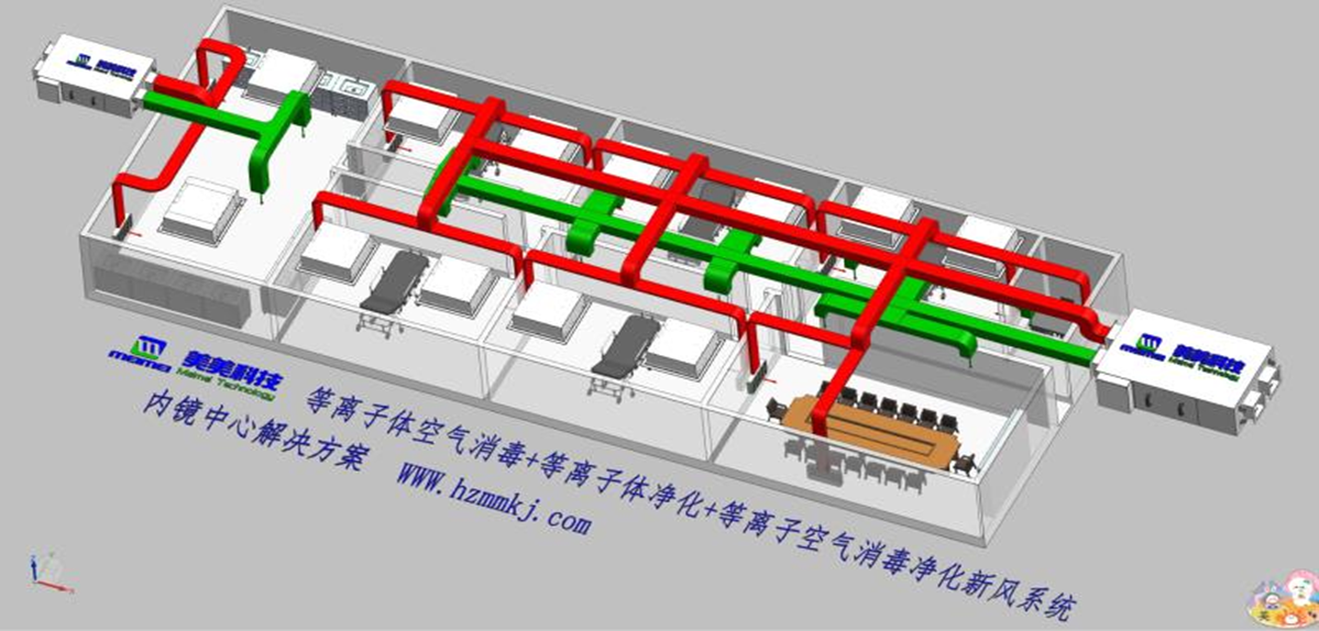 1、等离子体空气消毒净化新风系统管,控PM2.5、TVOC、微生物、氧饱和量、压差、负离子、冷热交换器。