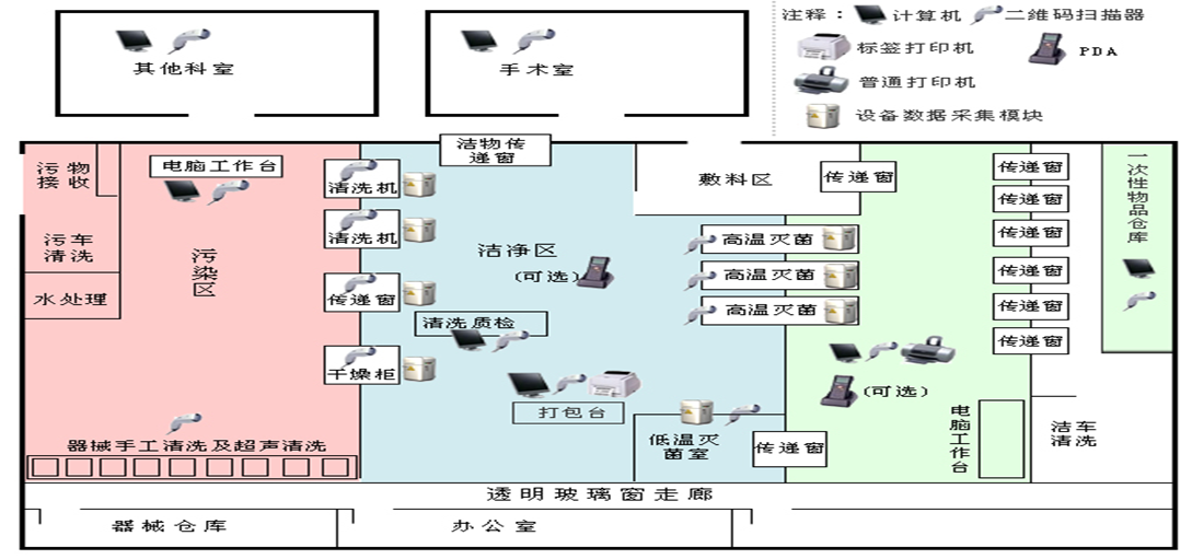 1、 国家规范要求:根据2017年6月1日执行《消毒供应中心管理规范》附录A中有要求上信息追溯管理软件系统,要求医院重复使用的消毒物器从:回收、清洗、检查、打包、灭菌、存储、发放、使用病人关联等,追溯所有涉及环节按规范做到过程控制,采集过程凭证。